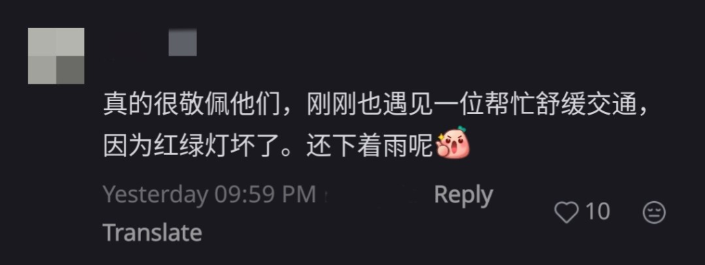 “I really admire them. I also just saw someone helping to ease the traffic because the traffic light was broken. And it was raining too.”