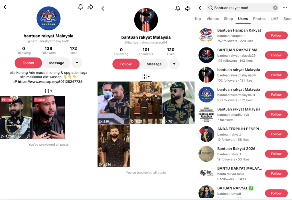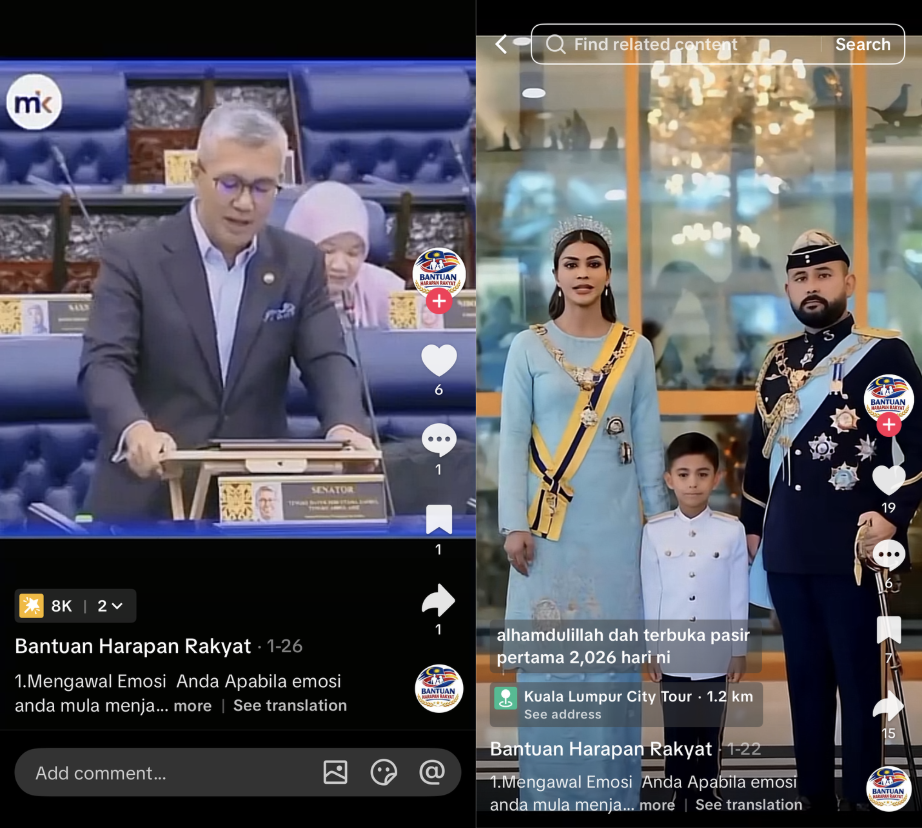 A quick check by Wah Piang found several other accounts with AI videos generated using other members of the royal family such as the Crown Prince of Johor Tunku Ismail ibni Sultan Ibrahim, his wife Che’ Puan Mahkota Khaleeda Johor, and political figures such as Tengku Zafrul Aziz.