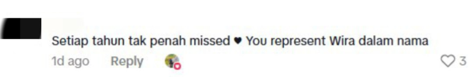 “Never missed a year. You truly represent Wira in every sense.”
