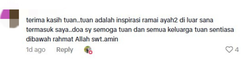 “Thank you, sir… you’re an inspiration to many fathers out there, including myself. I pray that you and your family will always be under Allah’s protection. Ameen.”
