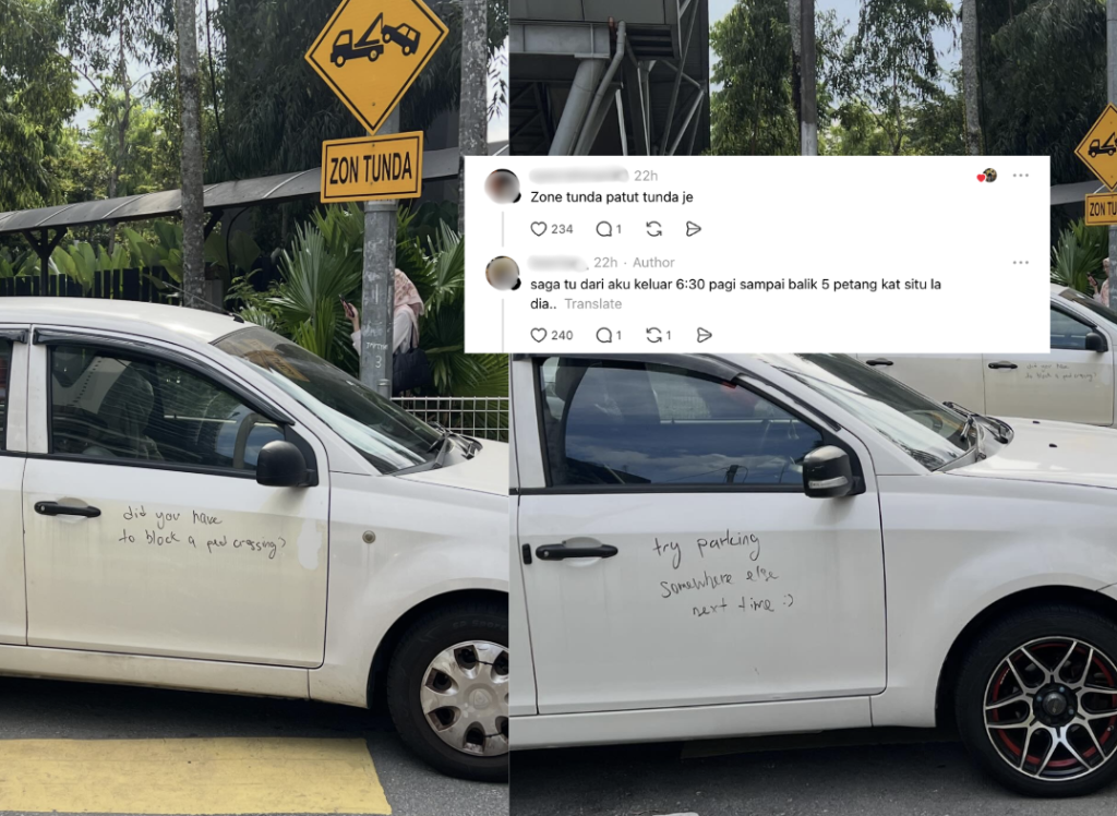 The car was parked right in front of a “tow zone” sign, causing netizens to question why no action was taken towards the cars illegally parked around Sri Rampai LRT.