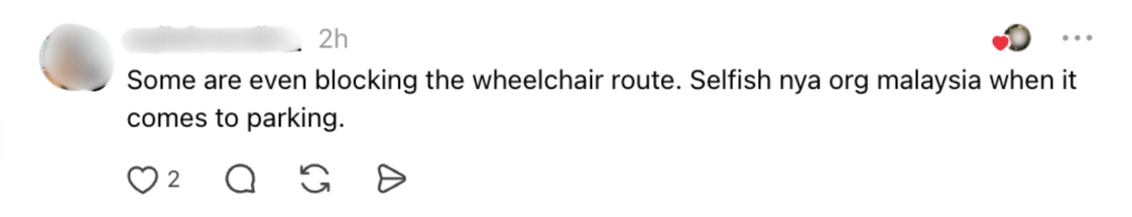 Irresponsible parking brings more than just inconvenience towards pedestrians, but also puts wheelchair users at an even bigger disadvantage by limiting their mobility even further.