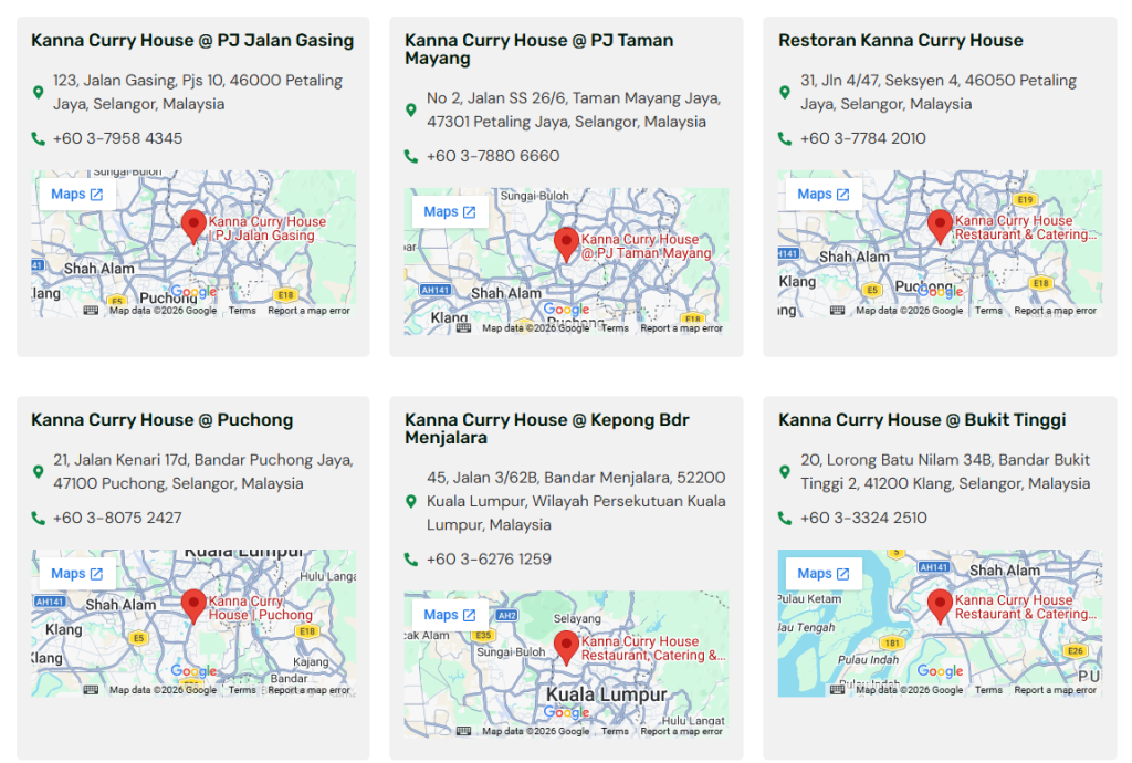 Currently, Kanna Curry House has 6 outlets among Malaysia: