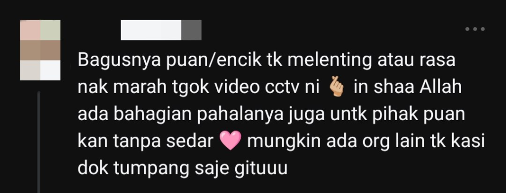 “It’s great that you didn’t get upset or angry watching the CCTV footage. InshaAllah, there’s reward for you as well, even unknowingly—after all, not everyone would just let others use their space like that.”