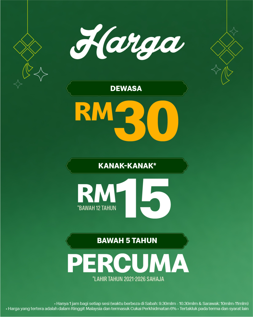 - Children (below 12 years old): RM15 per person