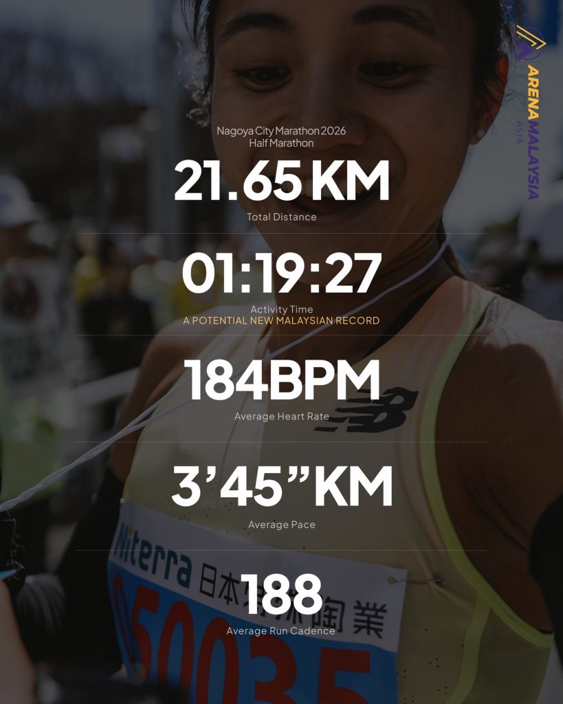Malaysian national triathlete and runner Esther Joy delivered a remarkable performance at the Nagoya City Marathon 2026 in Japan, breaking Malaysian women’s half marathon national record.